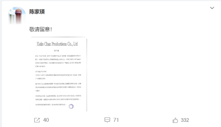 本司在此严正声明:王菲女士从未与上述品牌或任何相关实体存在合作或代言关系,亦与其一切推广活动毫无关联。